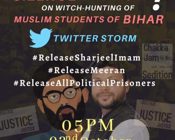 silence has become a cause of worry for it. Lalu Prasad Yadav has been unrelenting in his criticism of RSS and continues to be so. At the time when the nation was struck silent with the destruction of the Babri, he stood tall with his resounding refusal to bow and valiantly took a stand that will be remembered for generations. Similarly, as India once again stands at the precipice of democracy, a test that majority of India is failing, it is Sharjeel Imam who stood with immense courage against the tide and spoke relentlessly against the systemic denial of justice to Muslims and was audacious enough to stand before the country and demand justice, and nothing less. We must not forgot that Sharjeel and Meeran belong to the vibrant youth of Bihar who have a powerful history and continuing presence of shaking the very thrones of injustice in Bihar and the rest of the country when those in power deny the people their rights.