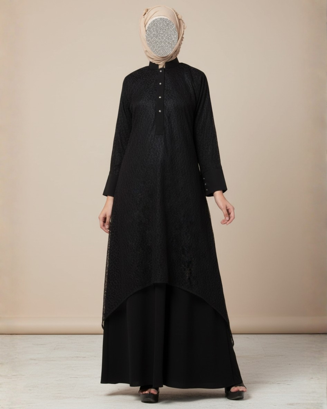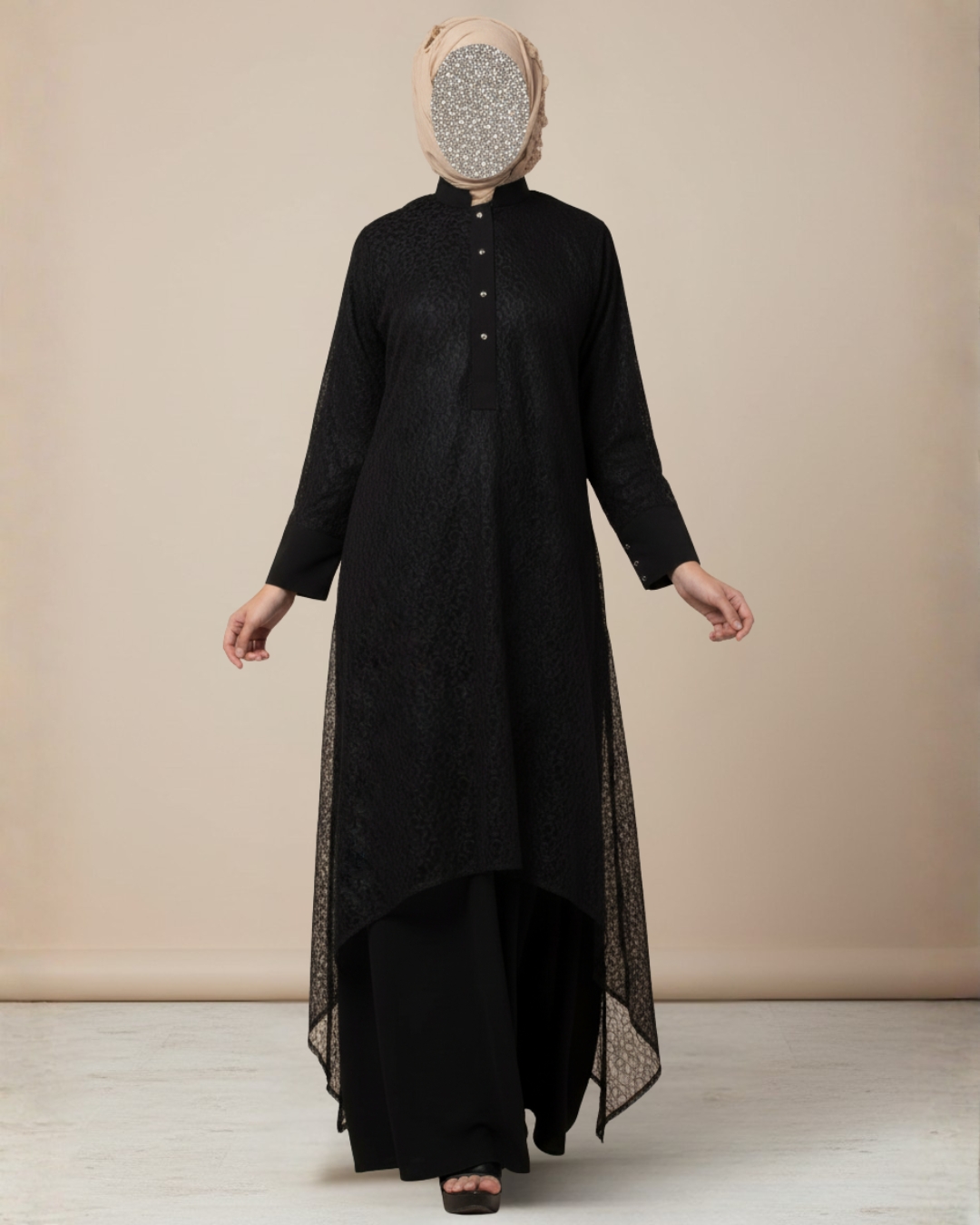 - Full-length modest silhouette