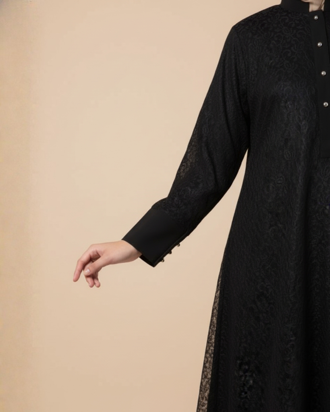 With its relaxed, flowy fit and full-length modest coverage, the abaya allows effortless movement while maintaining a graceful presence. The long sleeves with delicate button details further elevate the overall design, making it both stylish and practical.
