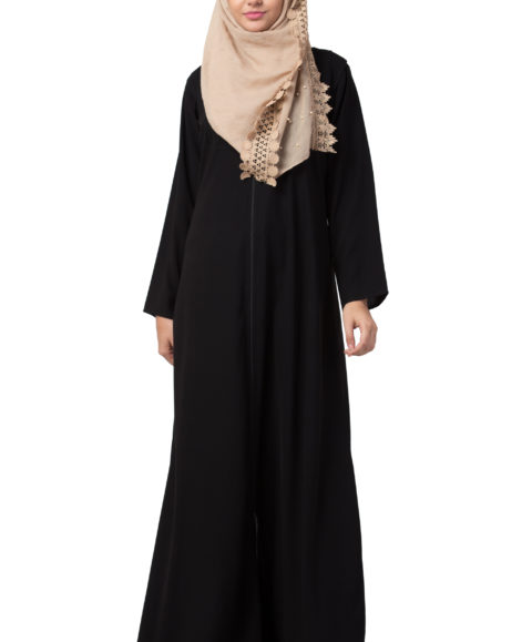 Embroidered Full Zipper Black Abaya