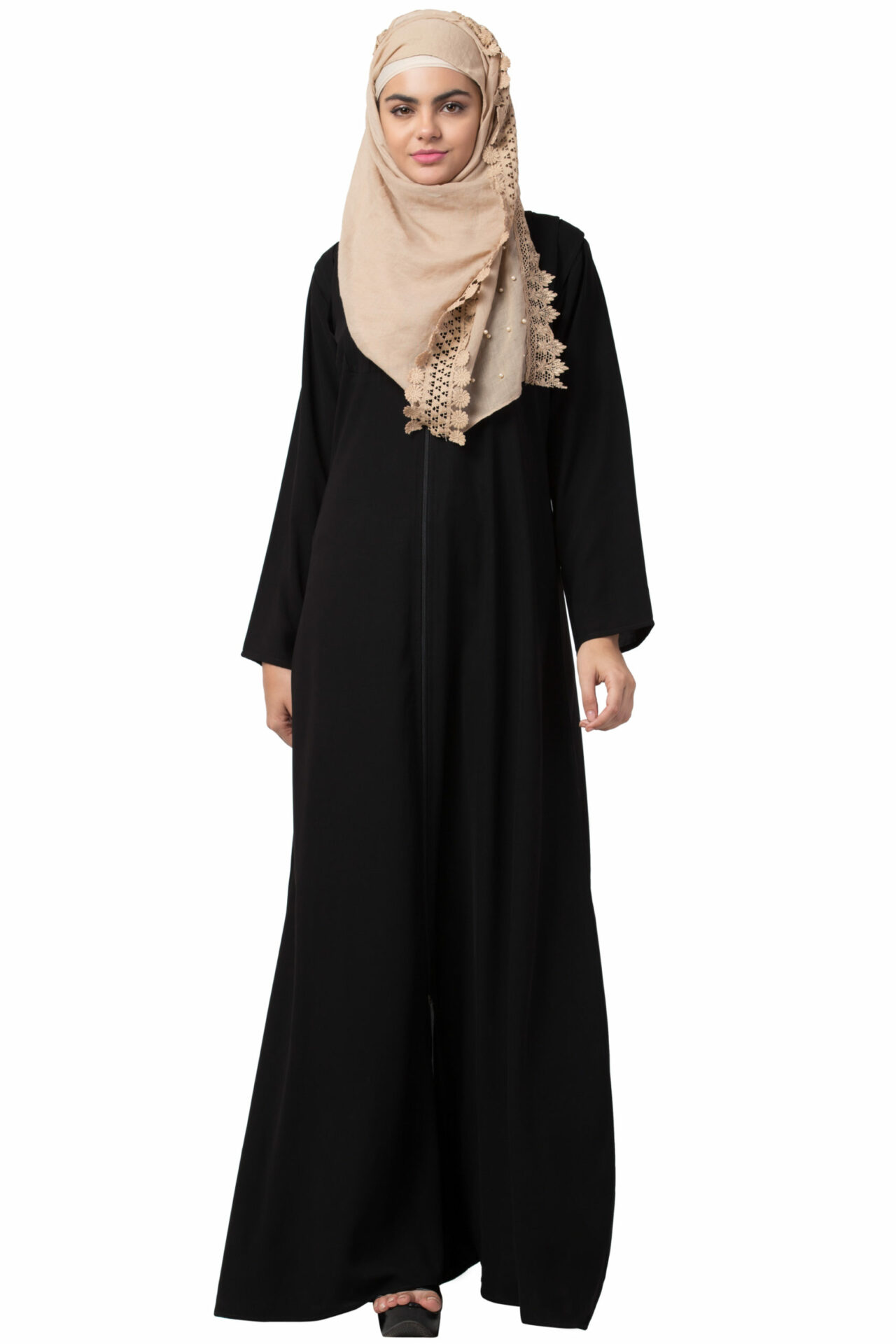 Beige Full Zipper Koti Abaya