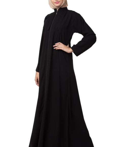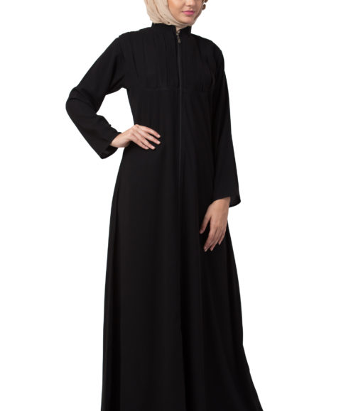Box Pleated Full Zipper Firozi Abaya