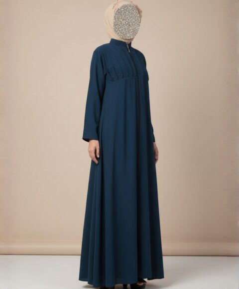 This Elegant Teal Pleated Abaya is designed for women who love modest fashion with a touch of modern elegance. Crafted from premium Koshibo fabric, the abaya offers a soft, lightweight feel with a smooth finish, making it comfortable for all-day wear.