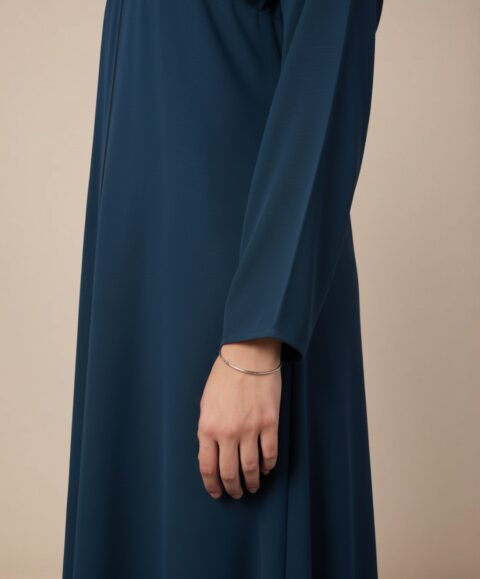 The loose, flowing silhouette provides excellent comfort and freedom of movement while maintaining full modest coverage. Its rich teal color adds a unique and stylish touch, making it suitable for both casual and semi-formal occasions.
