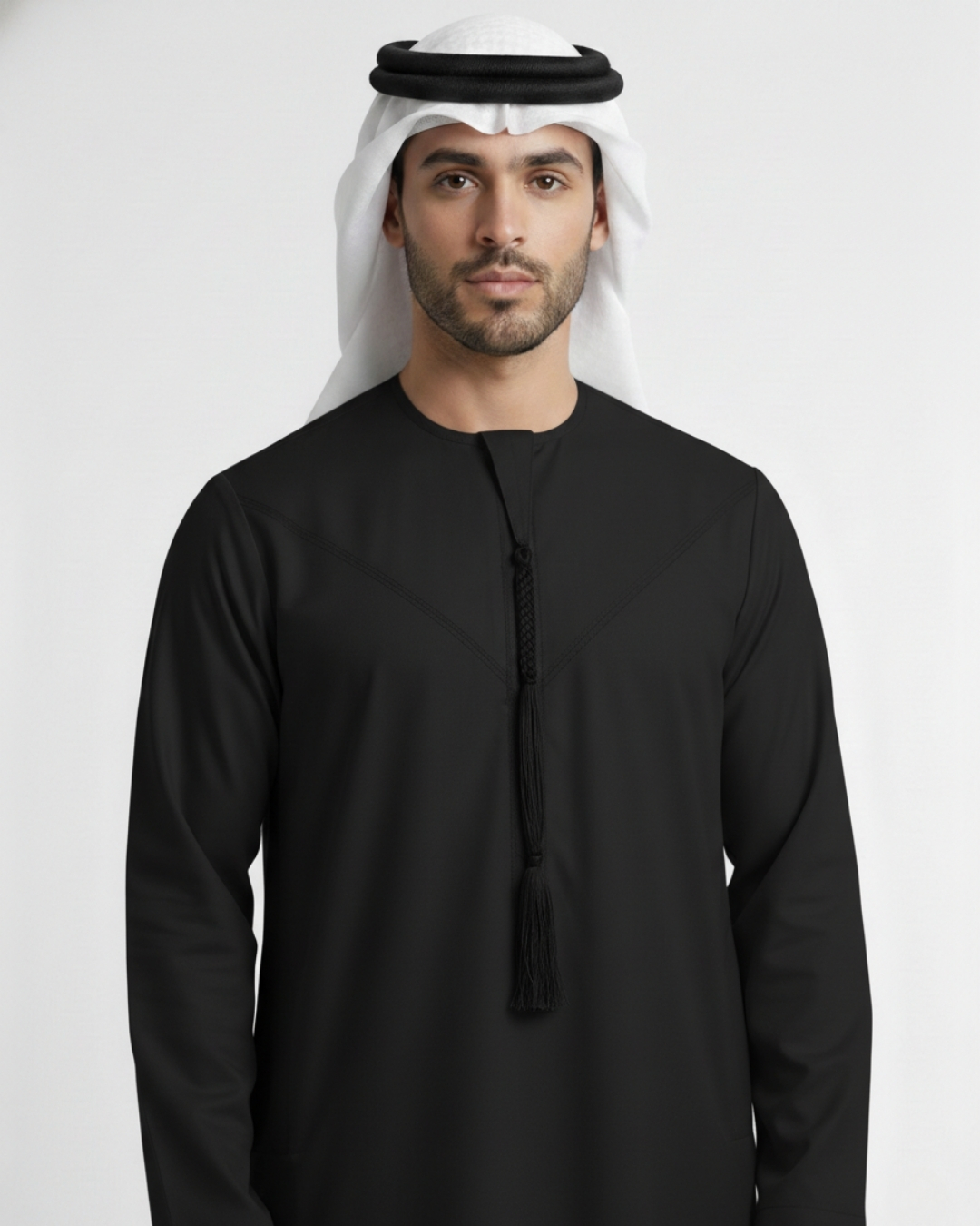 Elevate your traditional wardrobe with this Omani Style Jubba (Thobe), crafted for timeless elegance and everyday comfort. Designed with a minimal round neckline, refined front stitch detailing, and a signature braided tassel (Farwah), this jubba reflects authentic Gulf heritage with a modern silhouette.