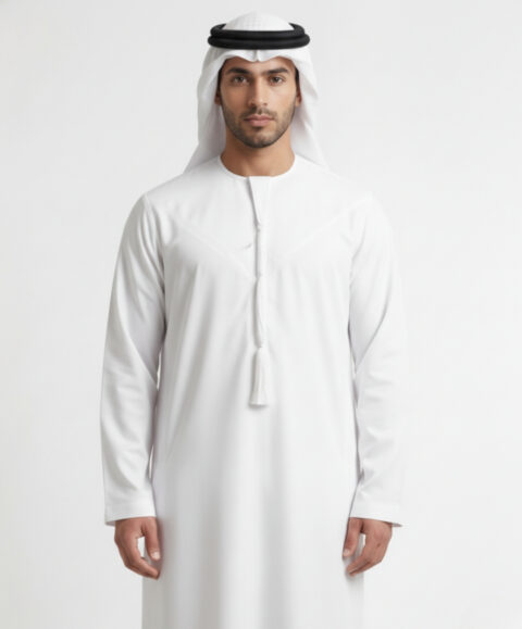 Elevate your traditional wardrobe with this Omani Style Jubba (Thobe), crafted for timeless elegance and everyday comfort. Designed with a minimal round neckline, refined front stitch detailing, and a signature braided tassel (Farwah), this jubba reflects authentic Gulf heritage with a modern silhouette.